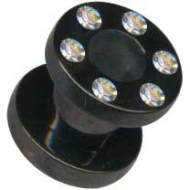 Flesh Tunnel mit Strass Steinen in Schwarz aus Chirurgenstahl C316L.