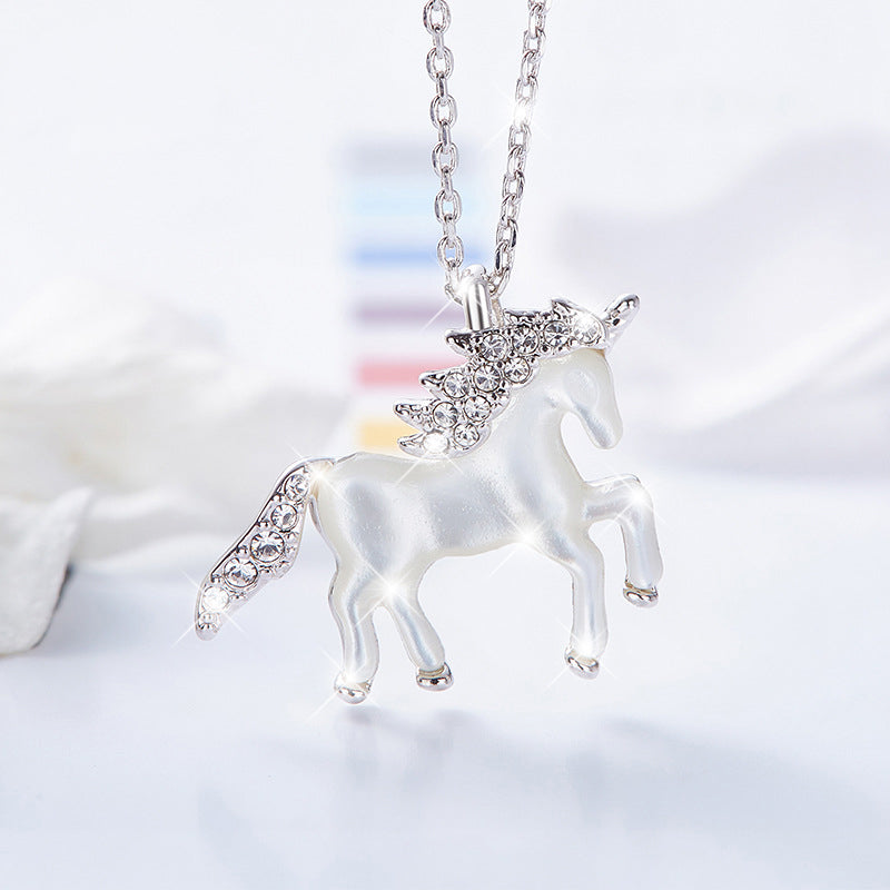 Verleihen Sie Ihrem Look einen Hauch von Magie und Glamour mit dieser Einhorn Halskette. Bestellen Sie jetzt und lassen Sie sich von diesem faszinierenden Schmuckstück verzaubern!"
