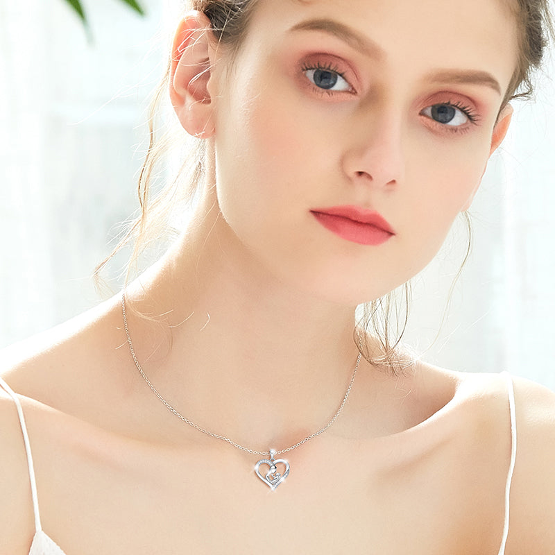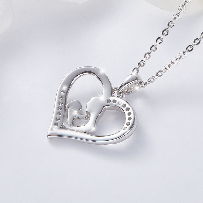Diese Halskette ist ein Muß für alle Mamis. Liebevoll in Herzform gefertigt, zeigt sie die liebende Mama mit ihrem Baby. Die Umrandung wurde mit 5A Zirkonia verziert.